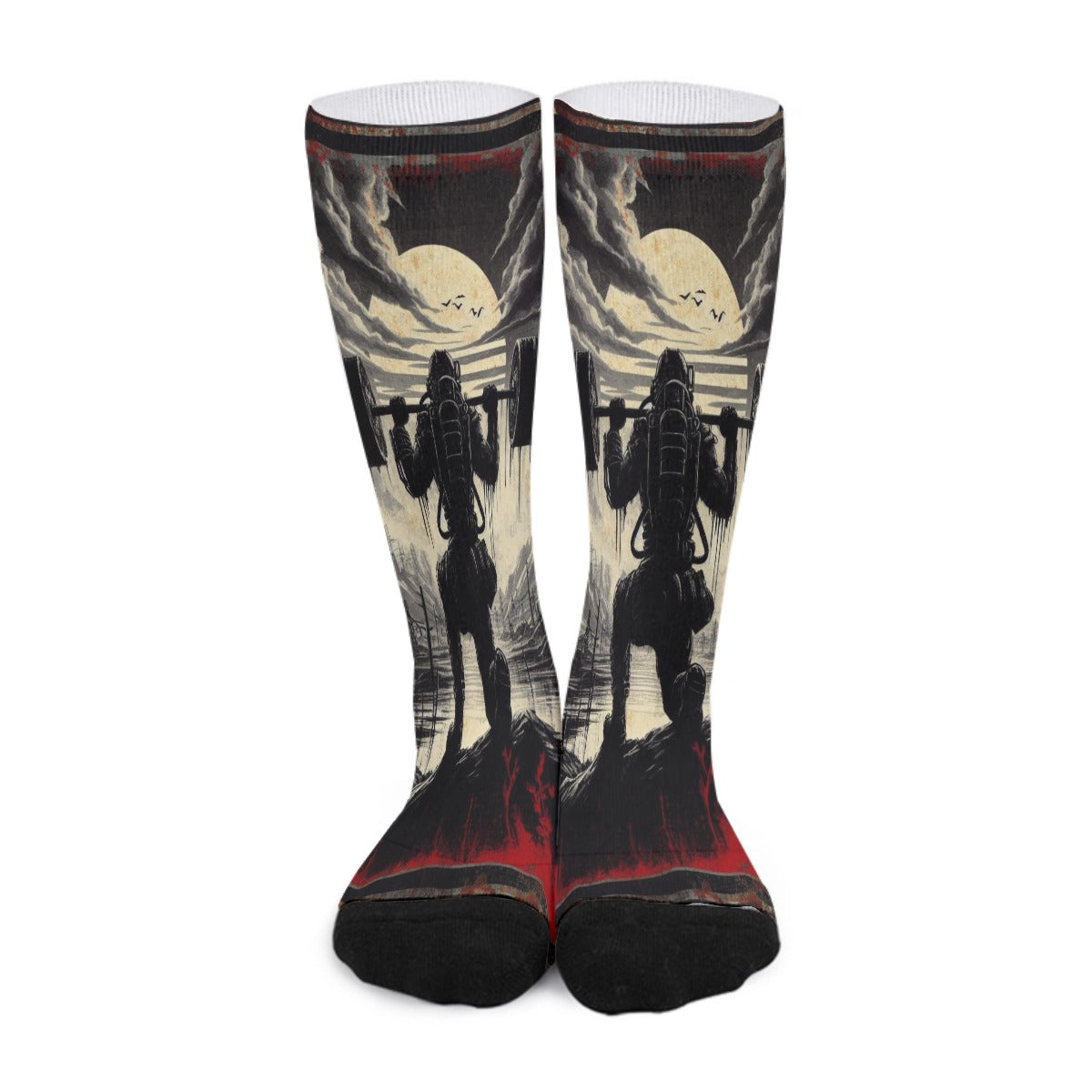 Step into a post-apocalyptic world of comfort and durability with the Ashen Stride all-over print unisex socks. Crafted from a polyester-cotton blend, these socks are designed for those who endure, providing unmatched elasticity and warmth. The "Ashen Stride" design reflects the resilience needed to walk through the ashes of a fallen world, while ensuring ultimate comfort and softness for everyday wear.